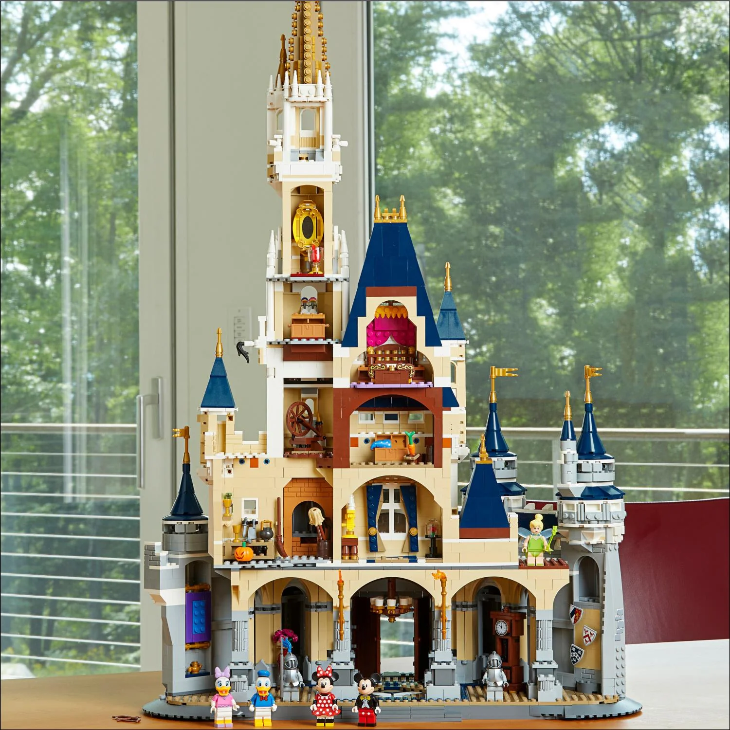Bring the magical world of Disney to your home with The Disney Castle. This highly detailed LEGO® model with over 4,000 pieces offers a rewarding build and play experience, and comes with an array of exciting Disney-themed features and functions. The intricately detailed facade and towers replicate the iconic Walt Disney World® Resort Cinderella Castle, and each accessible castle room includes special features inspired by some of Disney’s greatest animated feature films, providing endless play possibilities with the included minifigures: Mickey Mouse, Minnie Mouse, Donald Duck, Daisy Duck and Tinker Bell, or other characters from your collection.